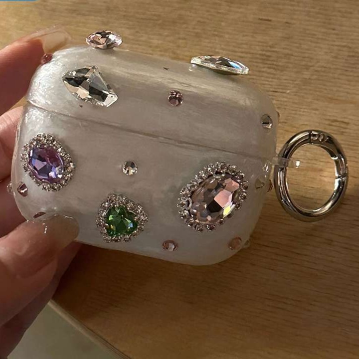 クリスタル宝石風装飾のおしゃれなエアーポッズプロケース