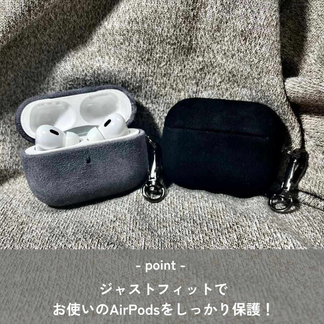 上質なスエード素材を使用したAirpodsケース。AirPods Proにもぴったりフィットするデザイン。