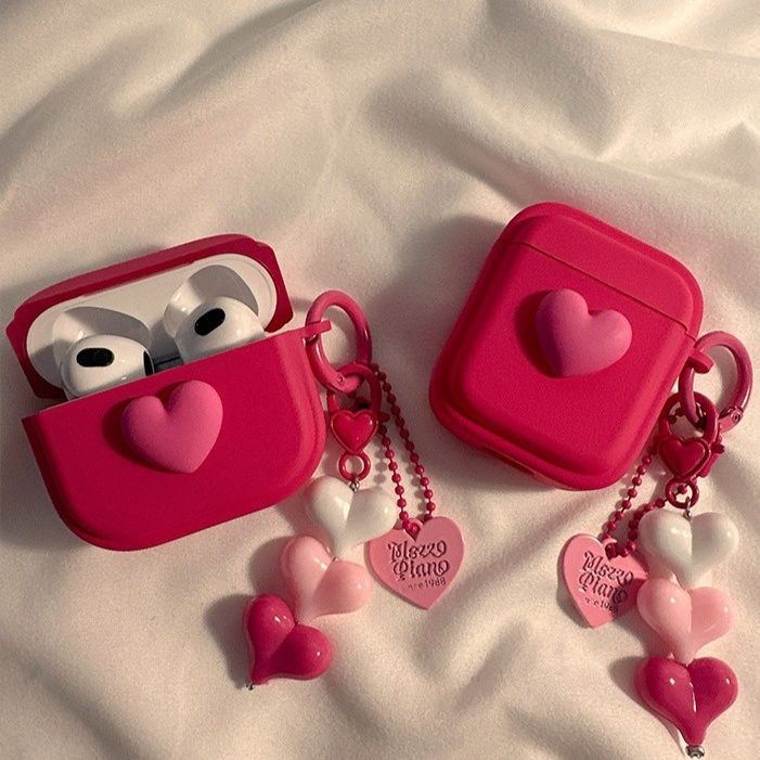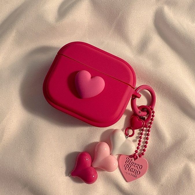 可愛らしいハートモチーフがたっぷりあしらわれたAirpodsケースです。 立体的なハート装飾がケース表面に施され、チェーン付きの愛らしいハートチャームがアクセントになっています。 シリコン素材で衝撃からAirPodsをしっかり保護し、日常使いにも最適です。 キュートなデザインで持ち歩くたびに気分が上がる、ガーリーな雰囲気が魅力の保護ケースです。