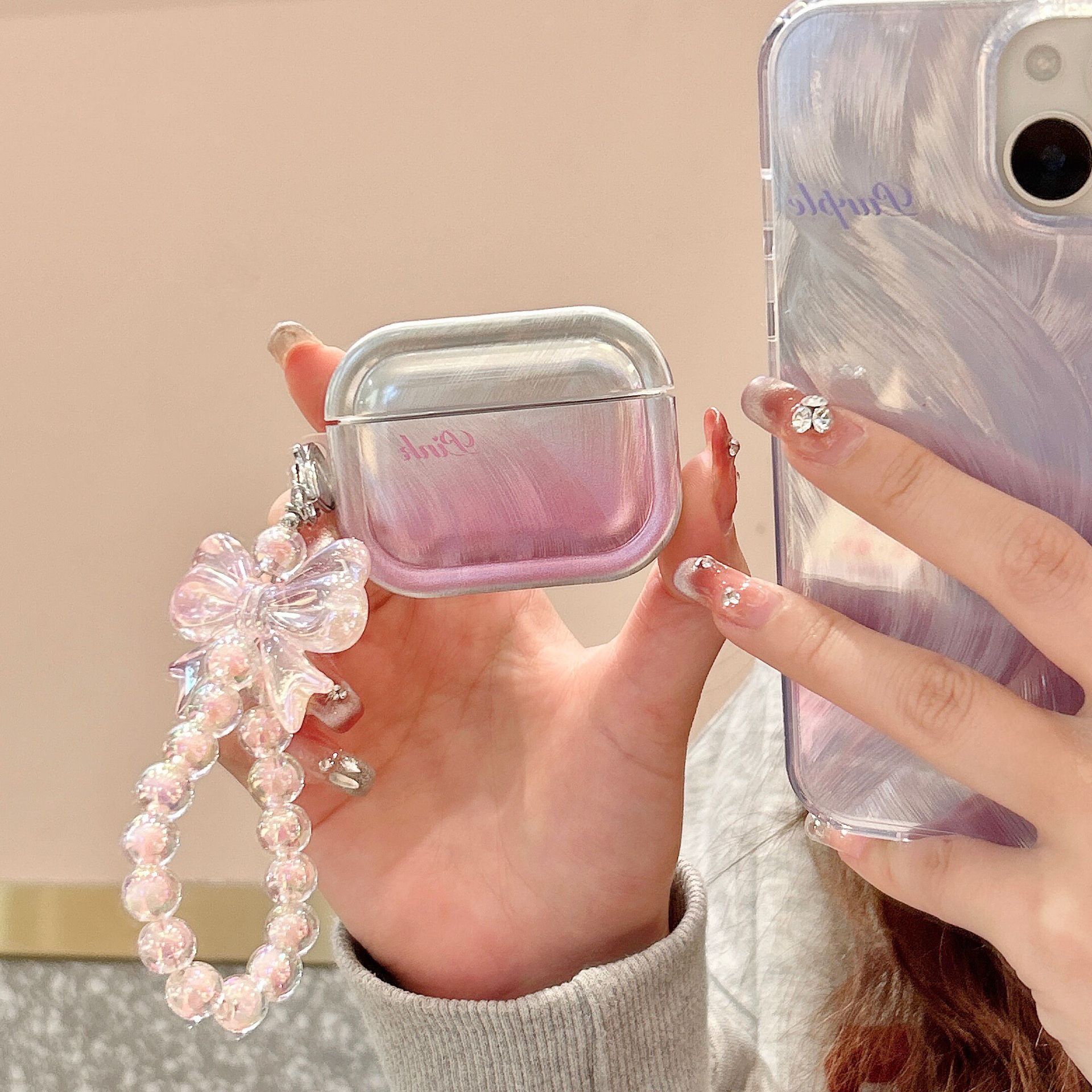 レディースらしい可愛さが魅力のAirpodsケースです。