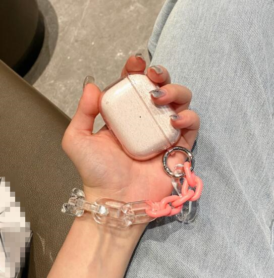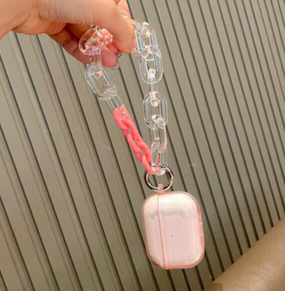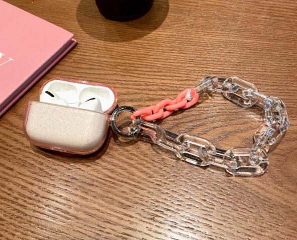 AirPods pro3に対応したおしゃれな保護ケースです。 透明チェーンとカラフルなアクセントが特徴的なデザインで、持ち運びに便利なキーホルダー仕様となっています。