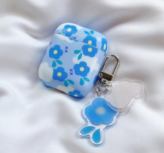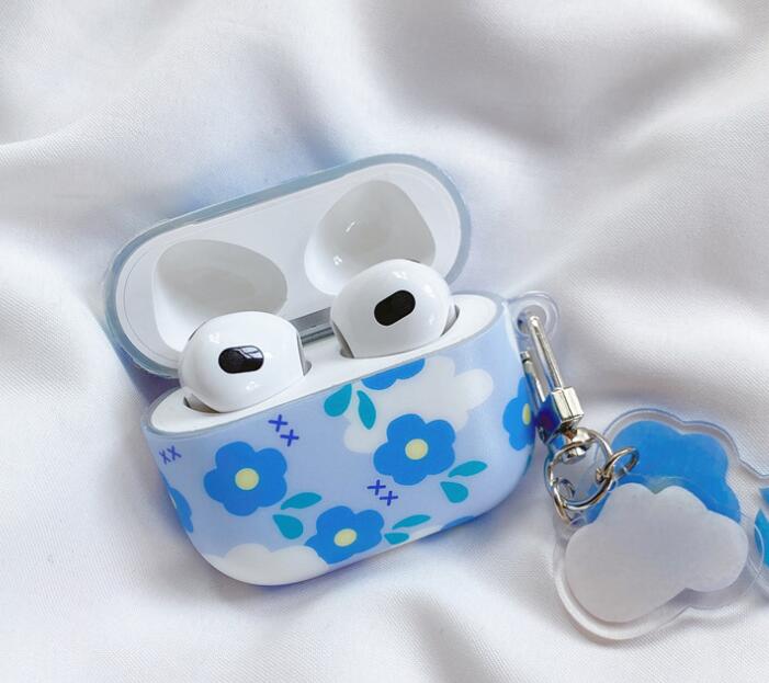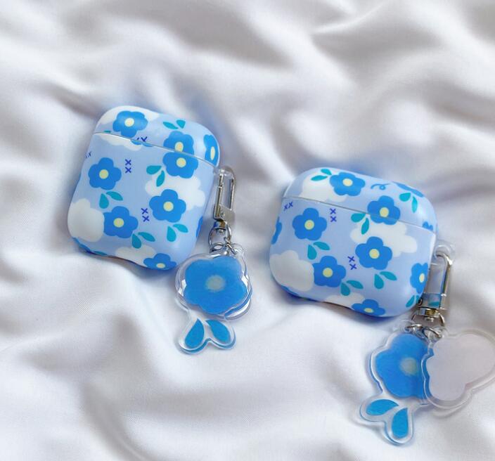 可愛い青い花柄デザインのエアーポッズケース専用保護カバーです。 AirPods pro3に対応しており、傷や汚れからしっかりと守ります。 おしゃれな花型チャームが付属で、持ち運びにも便利なカラビナ付きです。