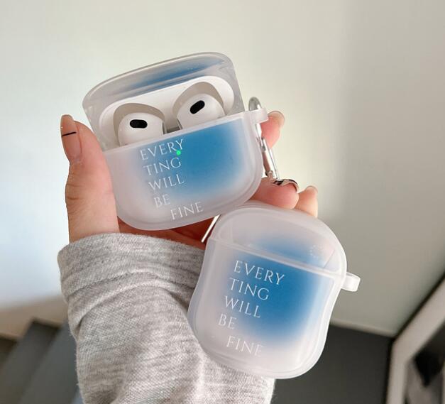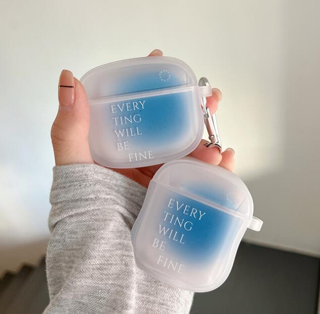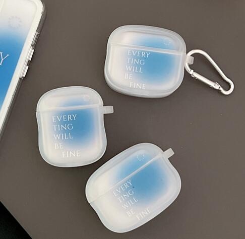 美しいブルーグラデーションデザインのAirPods pro3対応保護ケースです。 透明素材で高級感があり、大切なイヤホンをしっかり守ります。 カラビナ付きで持ち運びも便利。当サイト人気のケース商品です。