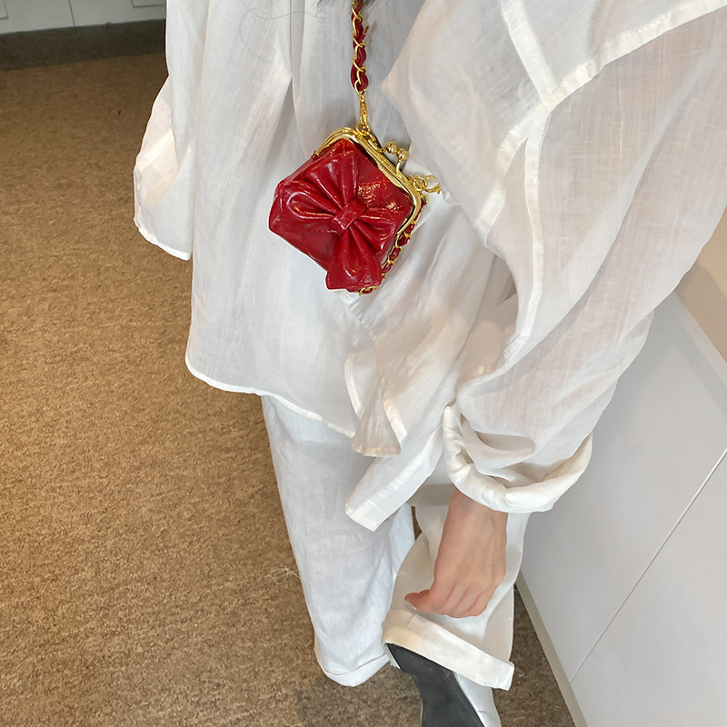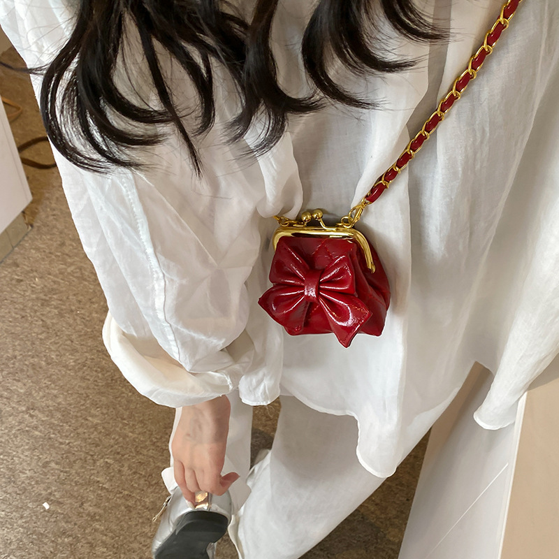 可愛いリボンデザインケースです。 がま口風の開閉でアクセスしやすく、チェーン付きで肩掛けバッグとしても使用可能。 子供から大人まで使える8色展開で、お気に入りのカラーが見つかります。 コンパクトなミニサイズで持ち運びに便利な専用ケースです。