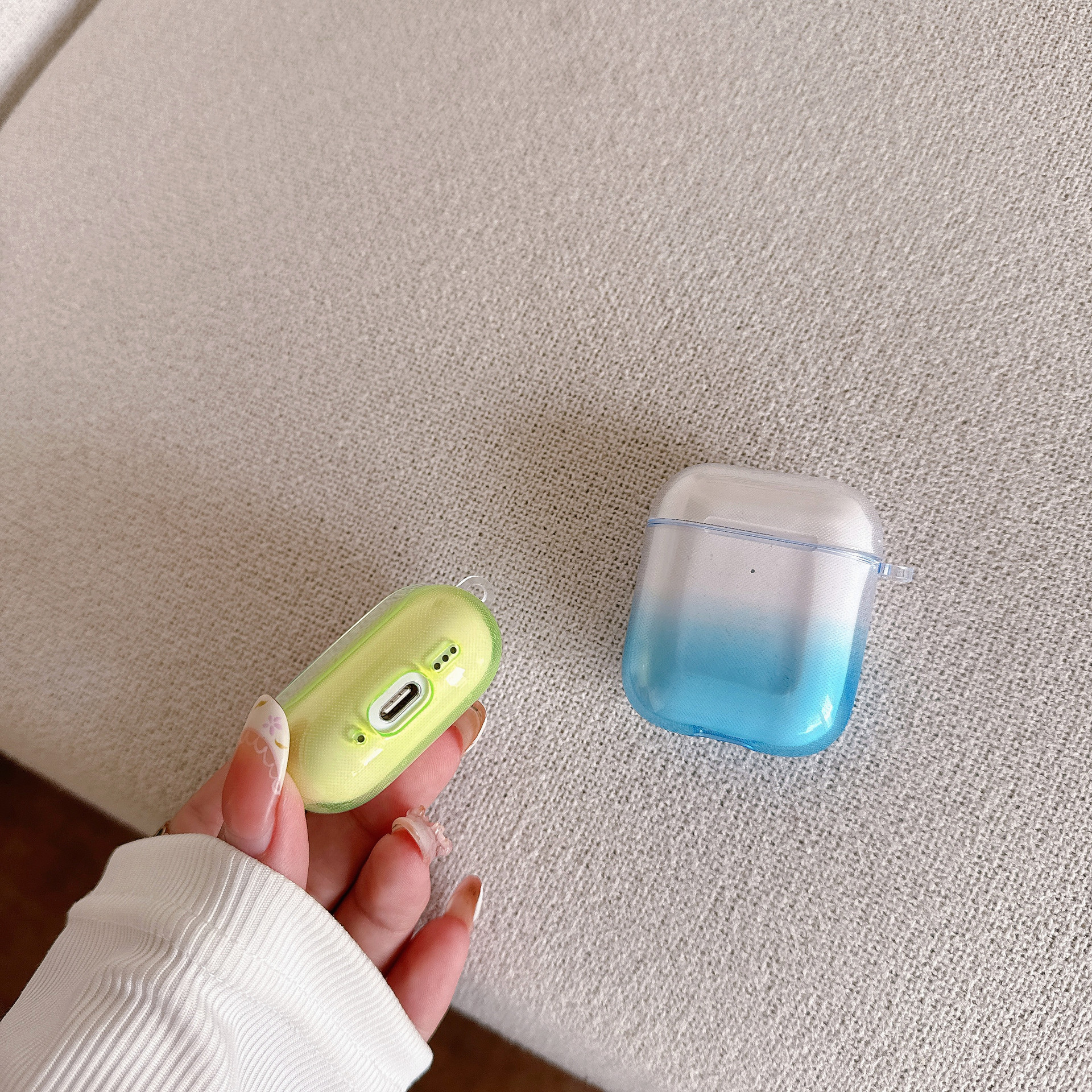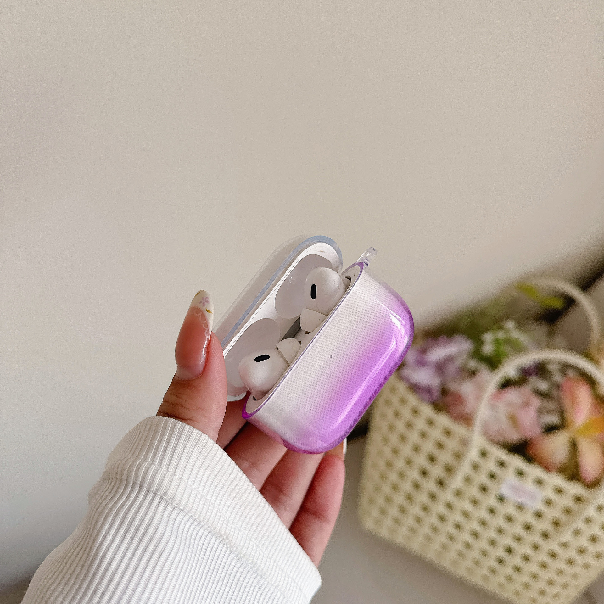 透明素材に美しいグラデーションが施されたAirpodsケースです。