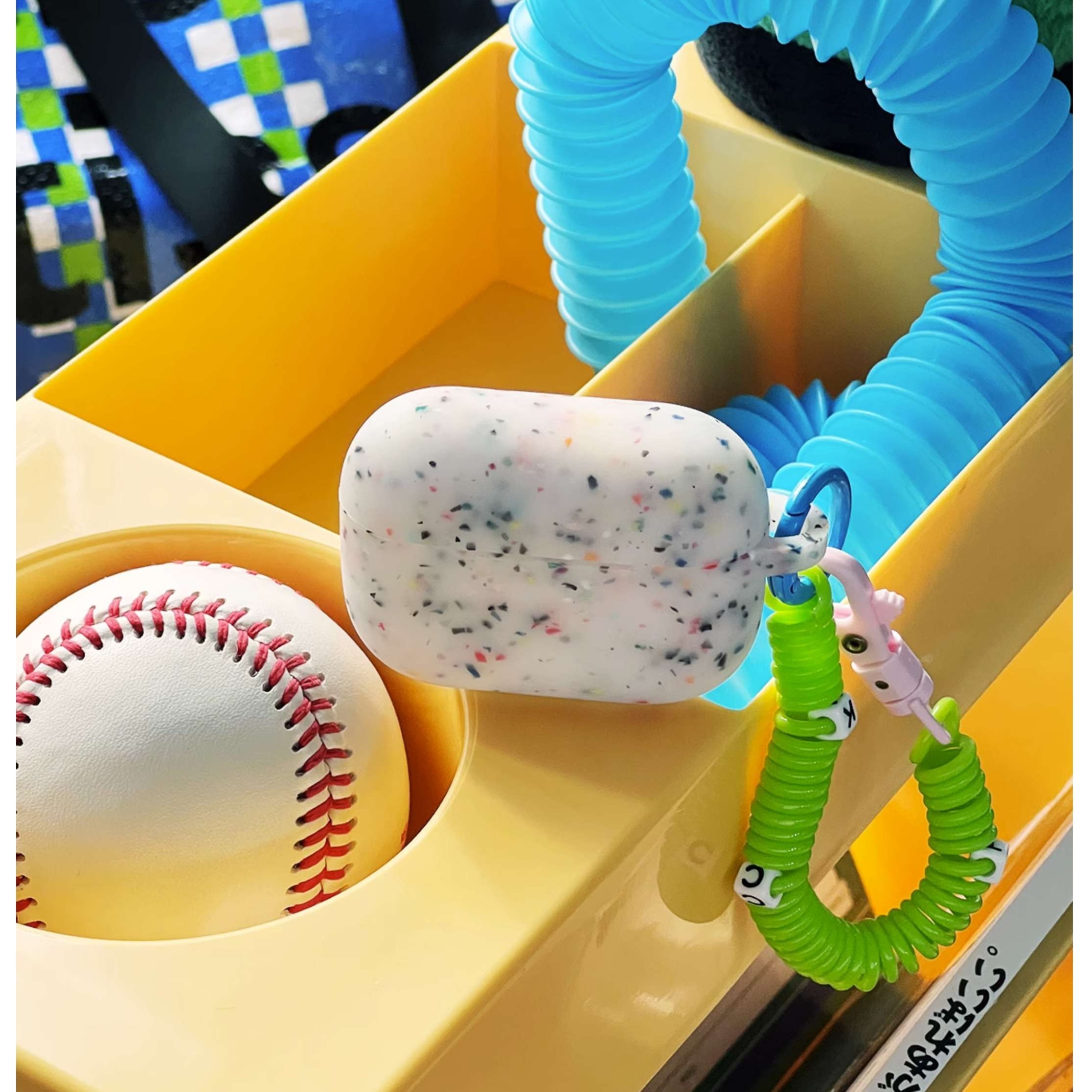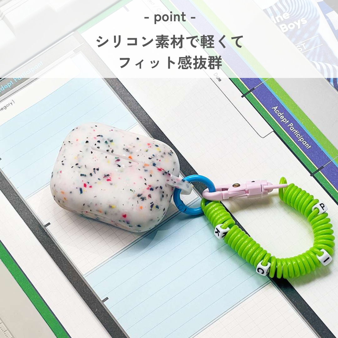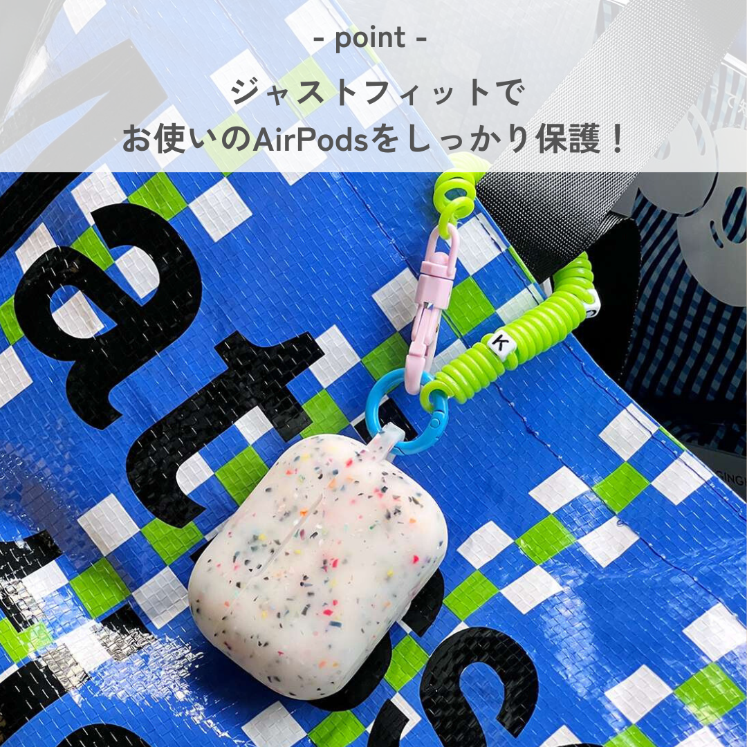 カラフルな粒子が織りなす独自のデザインが特徴のAirPods Proケース。個性的な模様が魅力で、あなたのスタイルを引き立てます。伸縮性のあるストラップ付きで、持ち運びや紛失防止も安心。ポップなデザインが日常使いを楽しく彩り、AirPods Proをしっかりと守ります。おしゃれで機能的なこのケースは、あなたの必需品になること間違いありません。