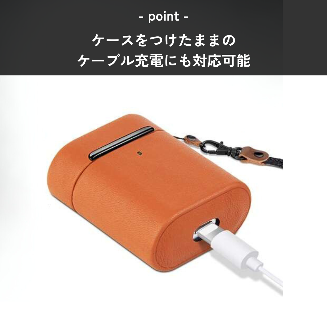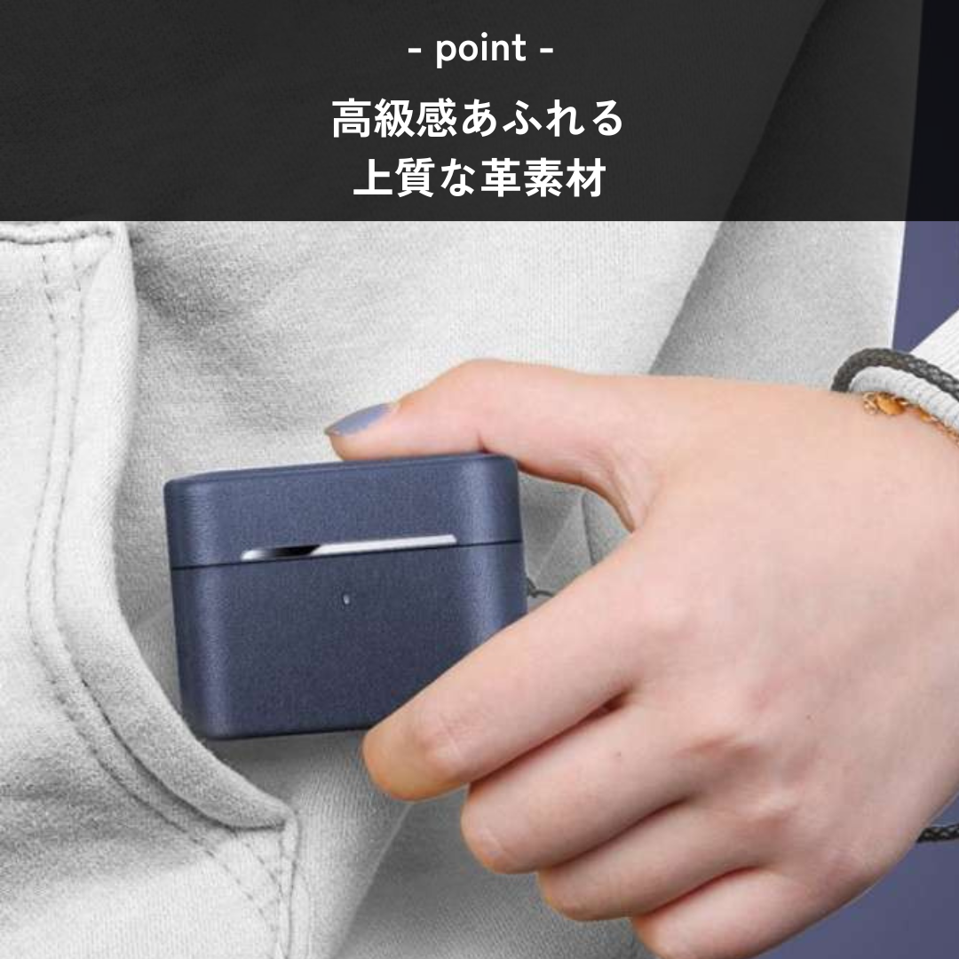 高級感あふれる革素材を使用したAirPodsケース。AirPods Proにぴったりフィットする洗練されたデザイン。