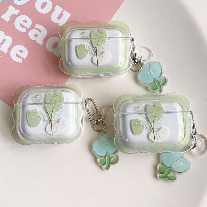 春の訪れを感じる新芽デザインのAirPodsケース。AirPods Proに対応した透明感のあるケースに、繊細な新芽イラストが描かれています。