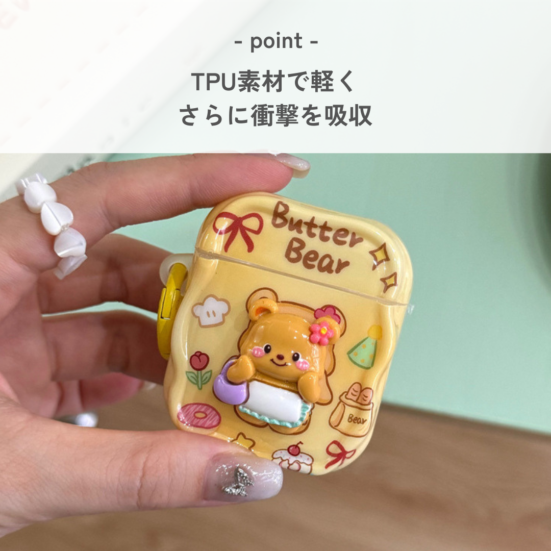 愛らしいクマのキャラクターが立体的にデザインされたAirpodsケース。