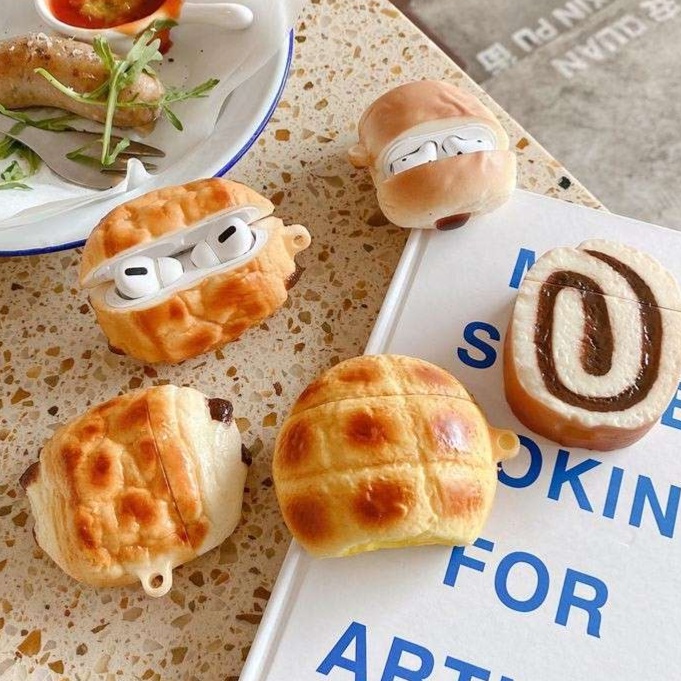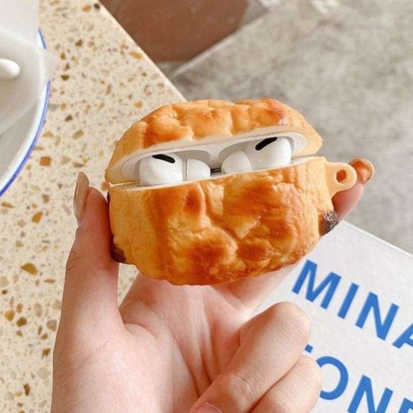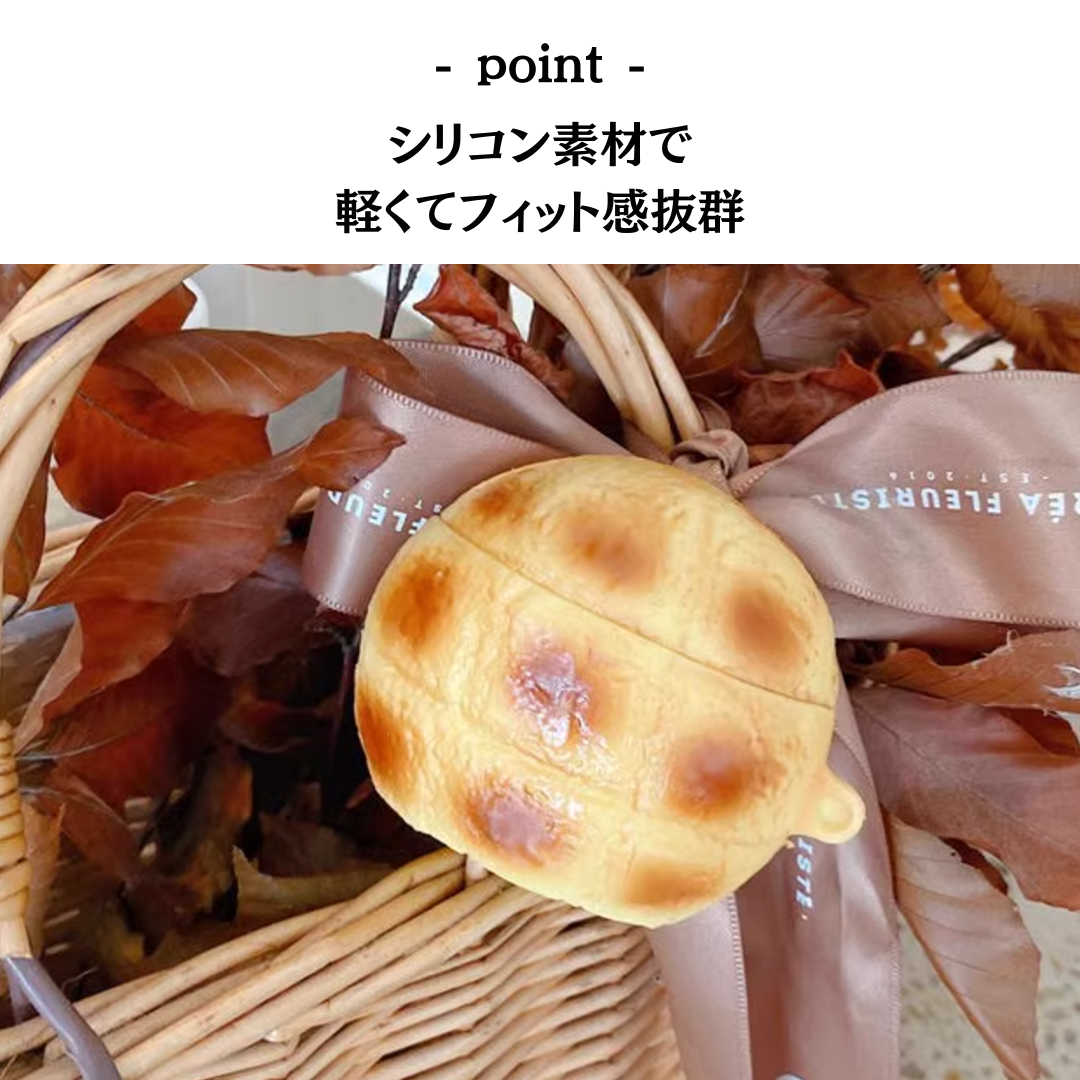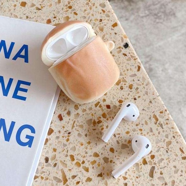 ミニチュアパンのようなAirpodsケース。こんがり焼けたショートブレッド型のPro対応ケースで、開くとイヤホンを完璧に収納。