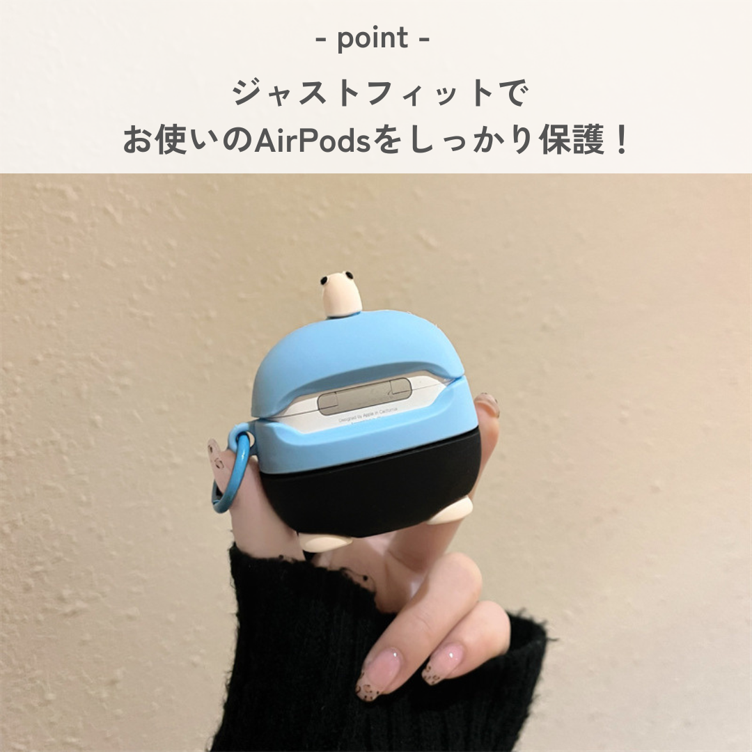 手足が飛び出した愛らしい形状で、AirPods Proにもぴったりフィット。