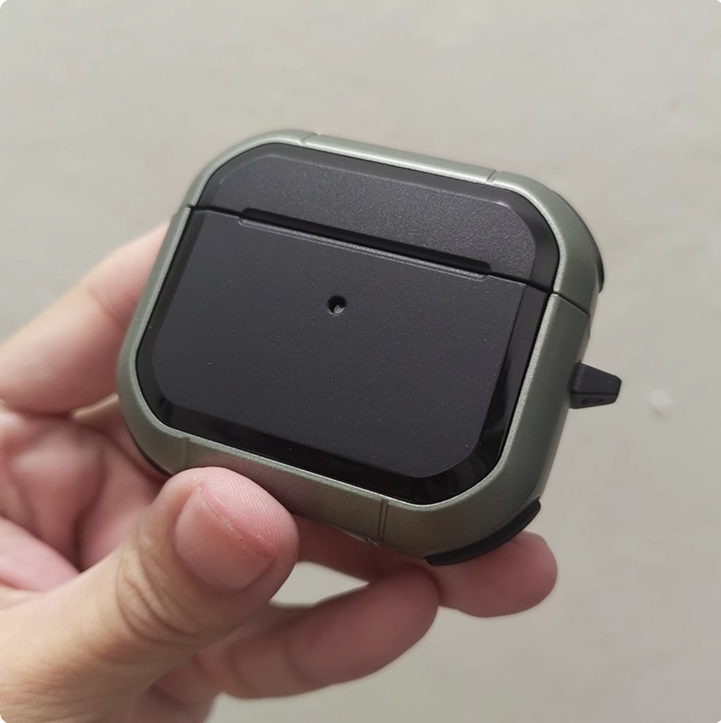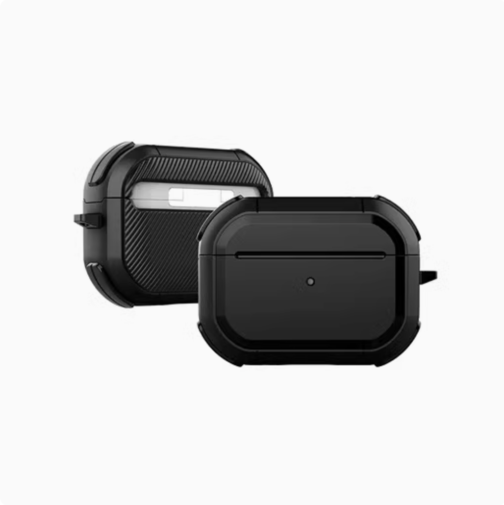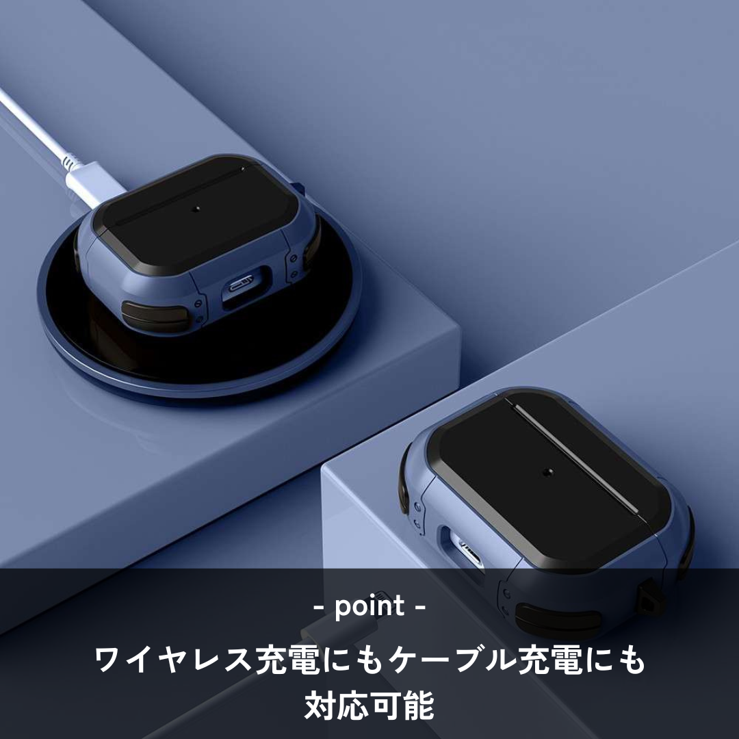 斜線デザインと耐衝撃性のある外装で、大切なワイヤレスイヤホンを守ります。