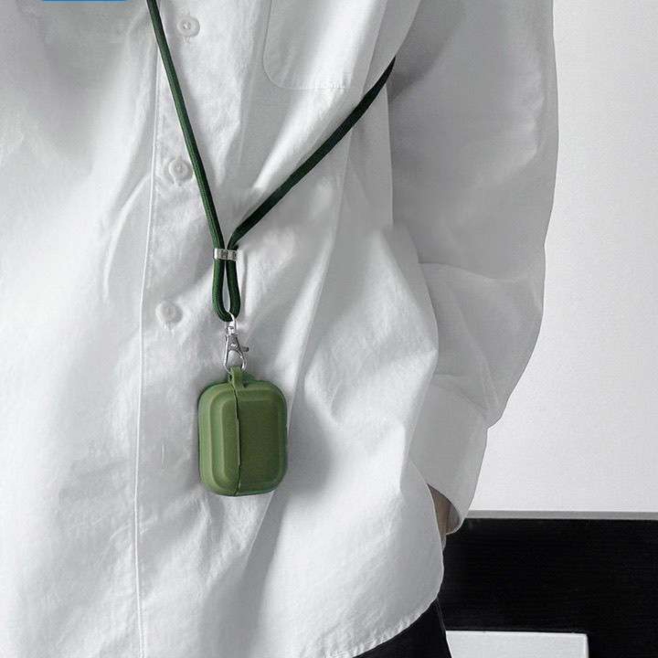 首掛け用のストラップ付きで、AirPods Proの紛失防止や持ち運びに便利。