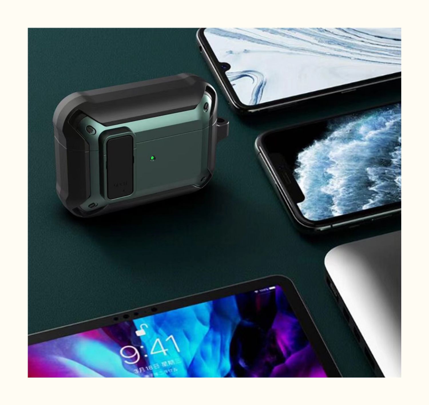 メンズにおすすめの頑丈なAirpodsケース。耐衝撃性に優れた外装で大切なイヤホンを保護します。